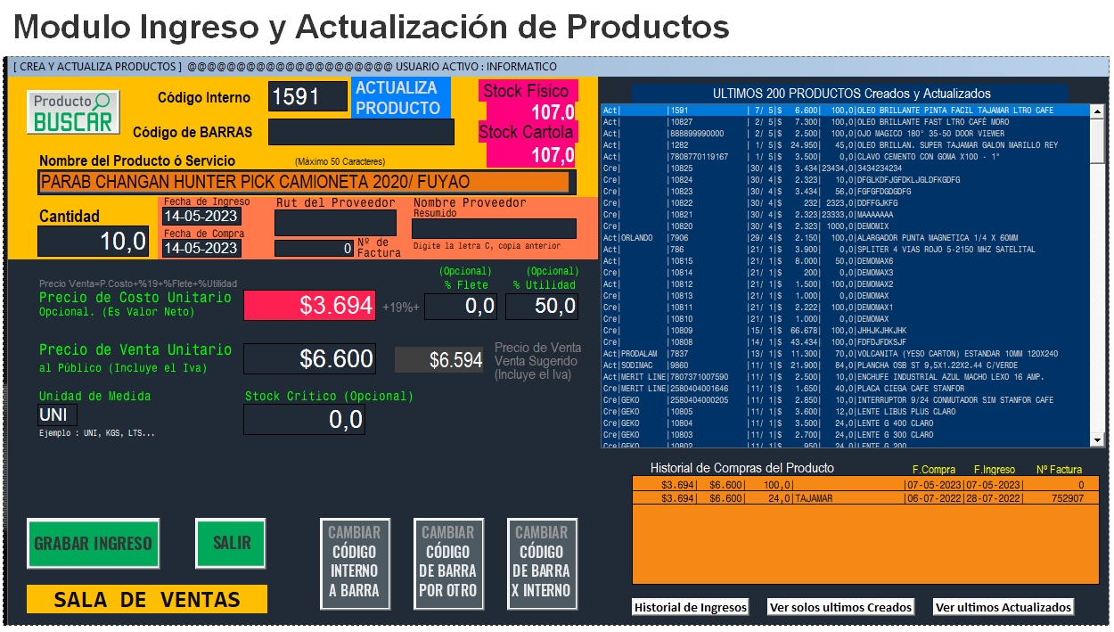 🗸 Permite Control de Usuarios : Cada usuario se puede asignar tipos de permisos : Ejemplo, Solo Vender.