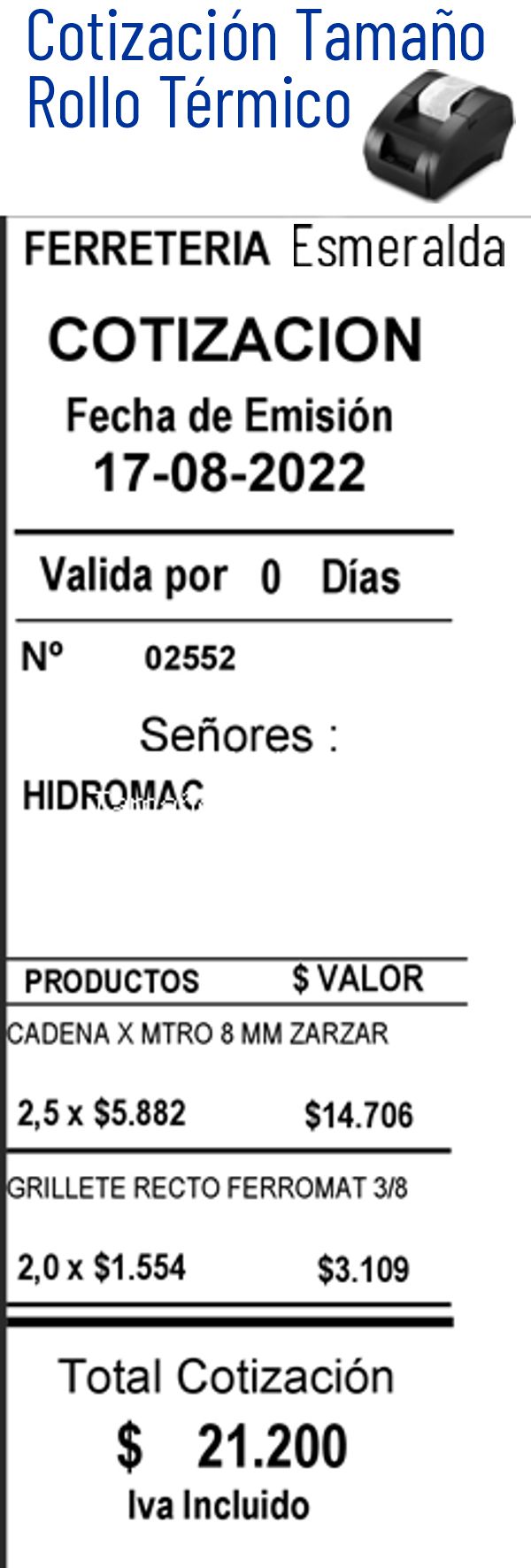 🗸 Emite las Cotizaciones en formato Tamaño Carta o para impresora Rollo Térmico
