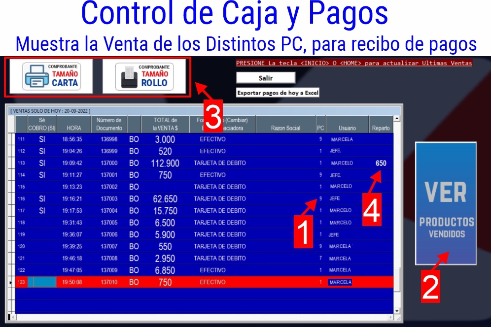 🗸 Permite Control de Usuarios : Cada usuario se puede asignar tipos de permisos : Ejemplo, Solo Vender.